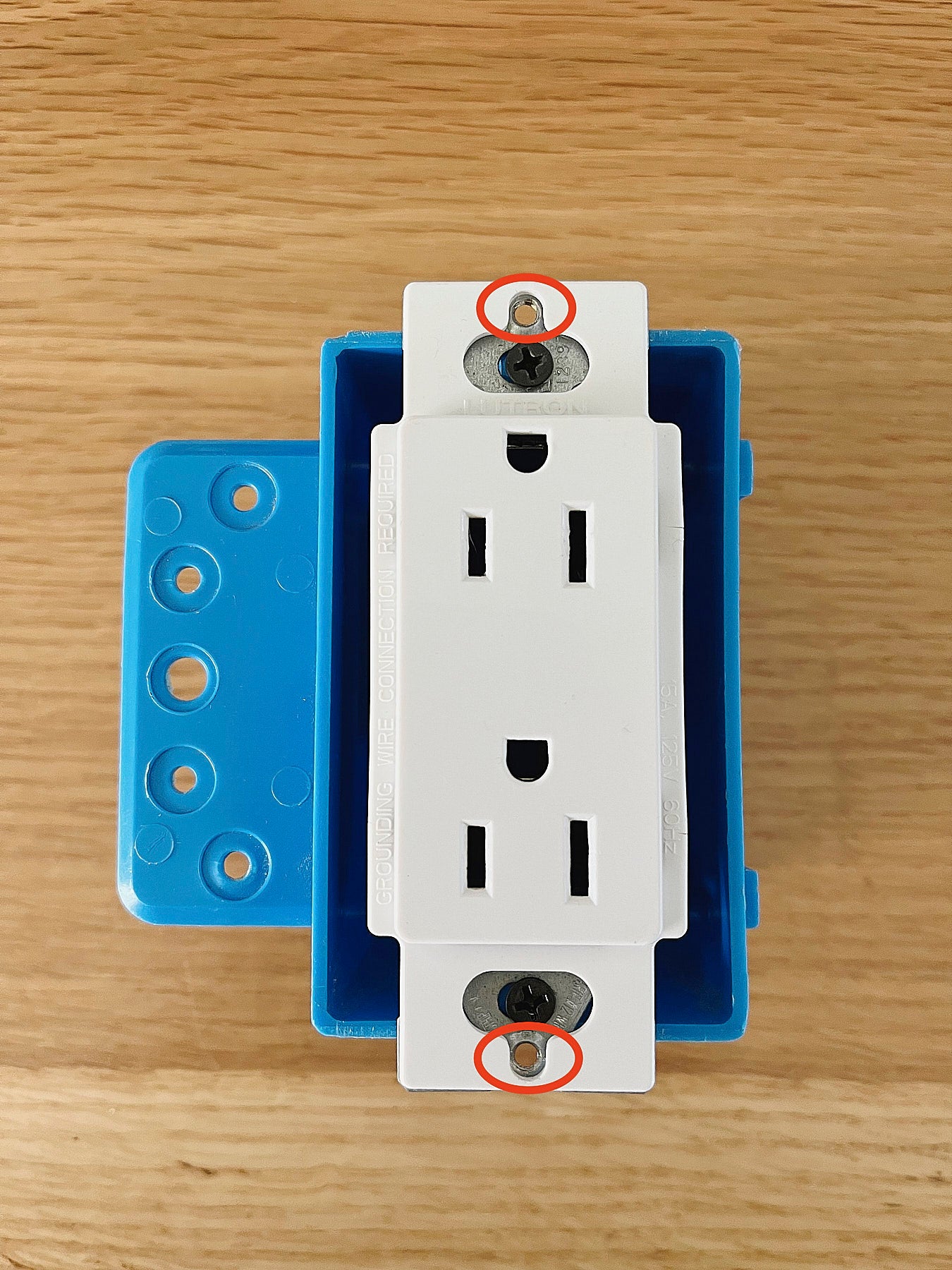 The electrical receptacle mounts to the junction box using the inside set of oval-shaped holes. These oval holes allow the receptacle to be installed perfectly level.